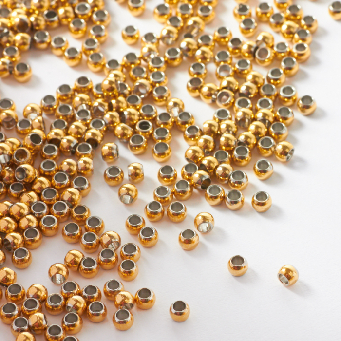 Kulki ze stali chirurgicznej z dużą dziurką w kolorze złotym 3mm PVDTo uniwersalny element wykończeniowy i dekoracyjny do projektów jubilerskich. Stal chirurgiczna 316L dobrze sprawdza się w biżuterii noszonej na co dzień, ponieważ łączy trwałość z estetycznym wykończeniem. Wykończenie w kolorze złotym uzyskane metodą PVD.Element ozdobny ze stali chirurgicznej 316L może pełnić funkcję koralika, przekładki lub subtelnego detalu wykończeniowego w biżuterii handmade. Tego typu półfabrykaty pomagają uporządkować kompozycję, oddzielić większe elementy i nadać projektowi bardziej dopracowany wygląd.Rozmiar