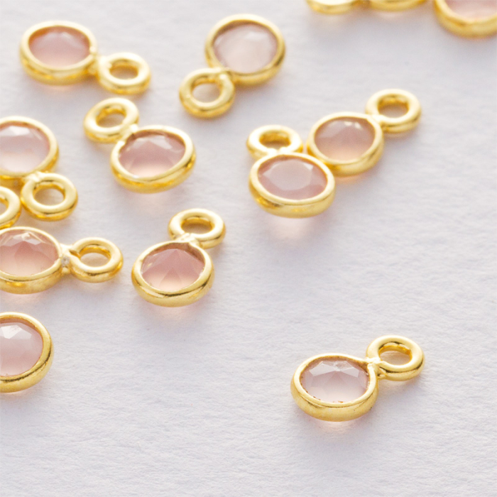 Kwarc różowy krążek fasetowany zawieszka w okuciu pozłacanym AG925 4mm
