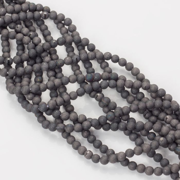 Kwarc syntetyczny powlekany kulka 4mm czarny stalowy