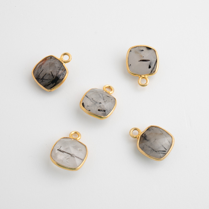 Kwarc z rutylem kwadrat fasetowany zawieszka w okuciu pozłacanym AG925 8mm