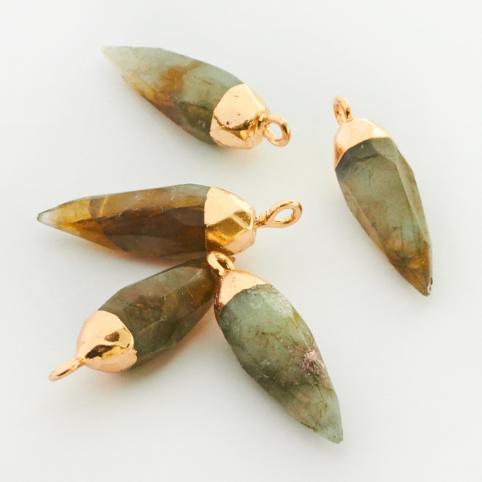 Labradoryt grot fasetowany w okuciu zawieszka 26mm