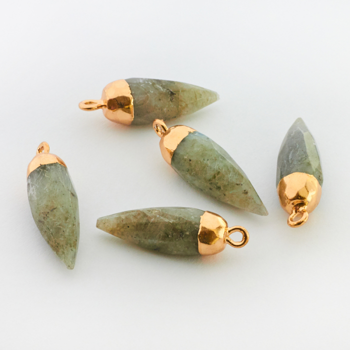 Labradoryt grot fasetowany w okuciu zawieszka 27mm