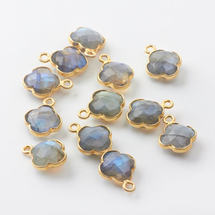Labradoryt koniczyna marokańska fasetowana w okuciu AG925 pozłacana 8,5mm