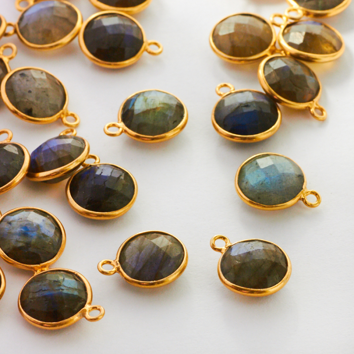 Labradoryt krążek fasetowany w okuciu AG925 10mm