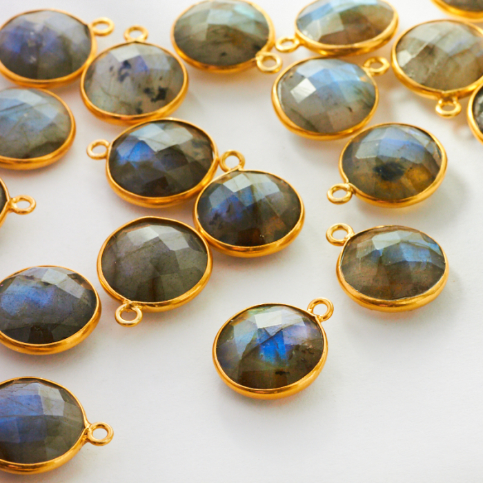 Labradoryt krążek fasetowany w okuciu AG925 12mm