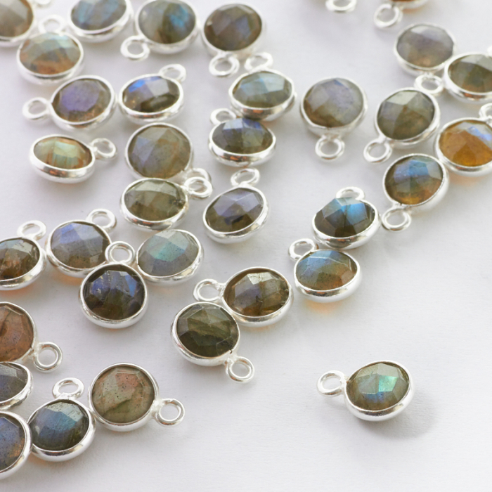 Labradoryt krążek fasetowany w okuciu zawieszka AG925 6mm