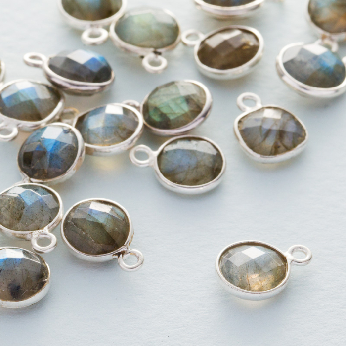 Labradoryt krążek fasetowany zawieszka w okuciu AG925 8mm