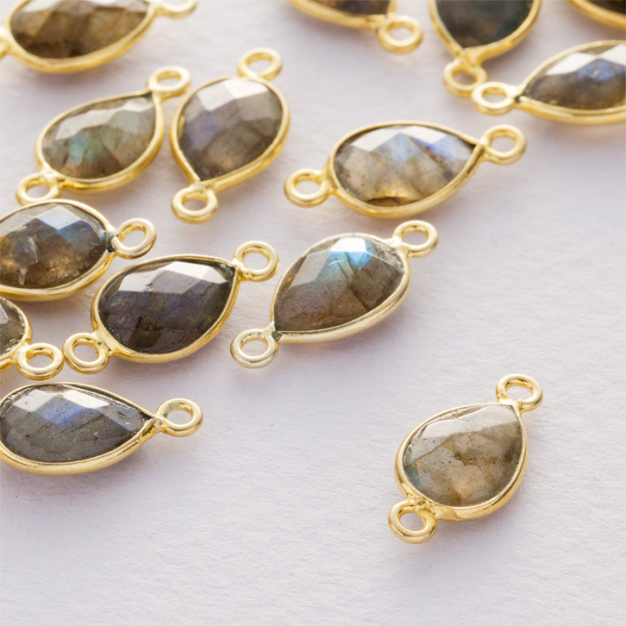 Labradoryt łezka fasetowana łącznik w okuciu pozłacanym AG925 10x7mm