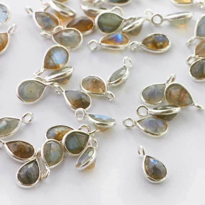 Labradoryt łezka fasetowana w okuciu zawieszka AG925 6mm