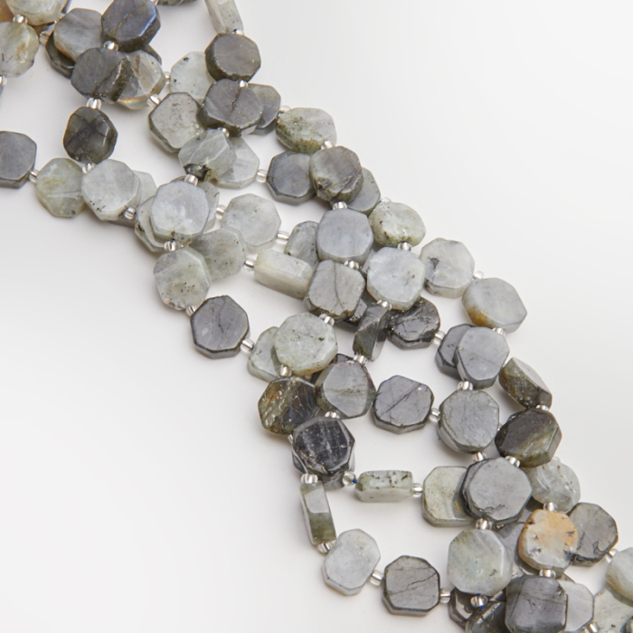 Labradoryt moneta wyróżnia się naturalną strukturą, dzięki czemu świetnie sprawdza się w biżuterii handmade – od bransoletek po naszyjniki.
