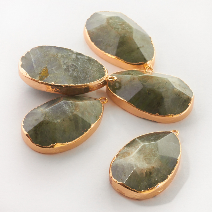 Labradoryt owal w okuciu zawieszka 40mm