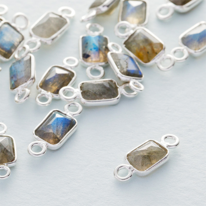 Labradoryt prostokąt fasetowany łącznik w okuciu AG925 7x5mm