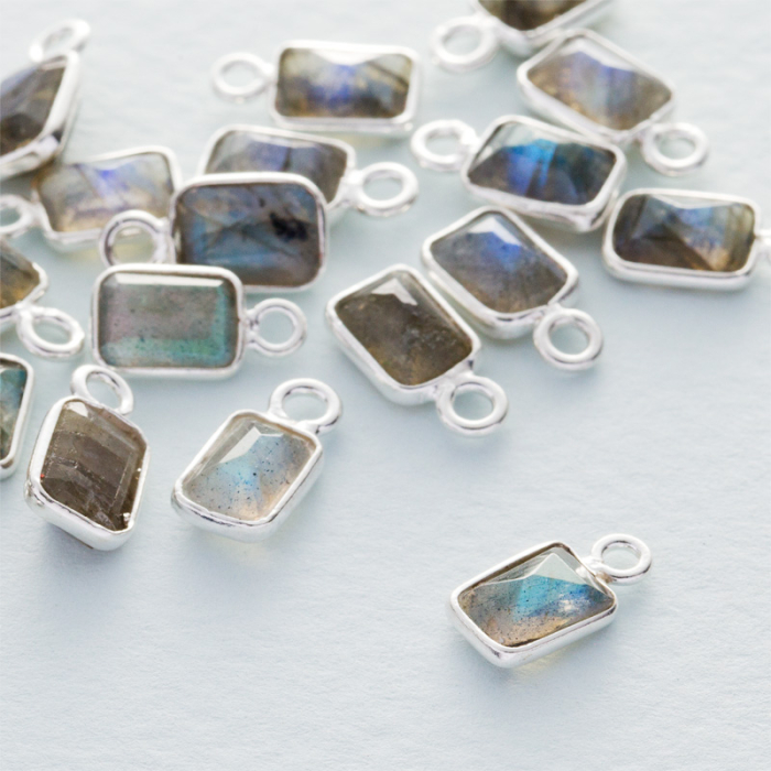 Labradoryt prostokąt fasetowany zawieszka w okuciu AG925 6,5x4,5mm