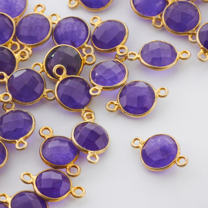 Łącznik jadeit fasetowany w okuciu pozłacanym AG925 8mm