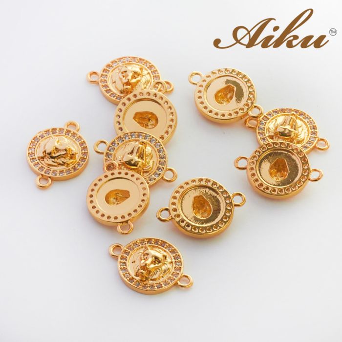 Łącznik koło z głową lwa z cyrkoniami złocona 13mm