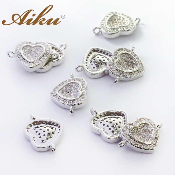 Łącznik rodowany serce z cyrkoniami 11,5mm