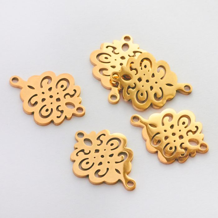 Łącznik ze stali chirurgicznej ażurowy w kolorze złotym 19,5mm