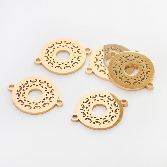 Łącznik ze stali chirurgicznej kółko ażurowe w kolorze złotym 19mm