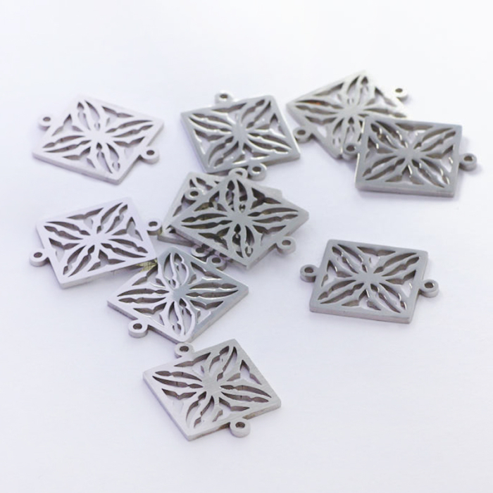 Łącznik ze stali chirurgicznej kwadrat ażurowy w kolorze srebrnym 15mm