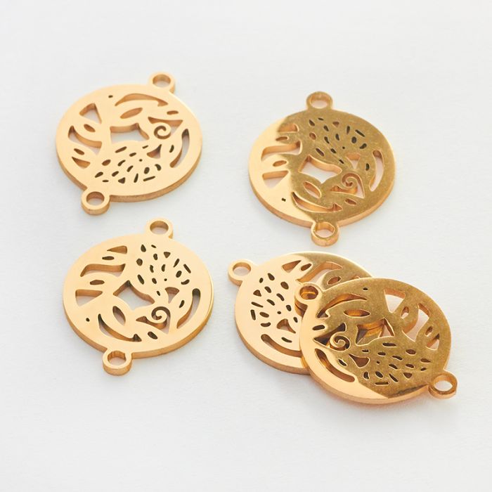 Łącznik ze stali chirurgicznej kwietna łąka w kolorze złotym 19,5mm