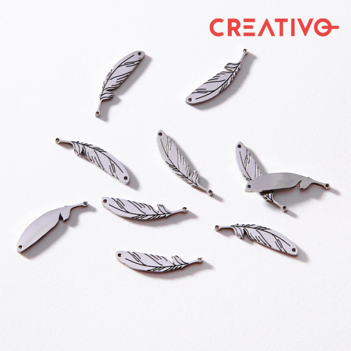 Łącznik ze stali chirurgicznej piórko w kolorze srebrnym 19,8mmTo funkcjonalny komponent do biżuterii handmade. W biżuterii handmade stal szlachetna jest ceniona za dobry wygląd, odporność na korozję i wygodę codziennego użytkowania.Łącznik ze stali szlachetnej to praktyczny i dekoracyjny element, który pozwala w estetyczny sposób połączyć różne części biżuterii. Sprawdza się w bransoletkach, naszyjnikach i kolczykach, gdzie liczy się zarówno funkcjonalność, jak i spójny wygląd projektu.Forma lub motyw