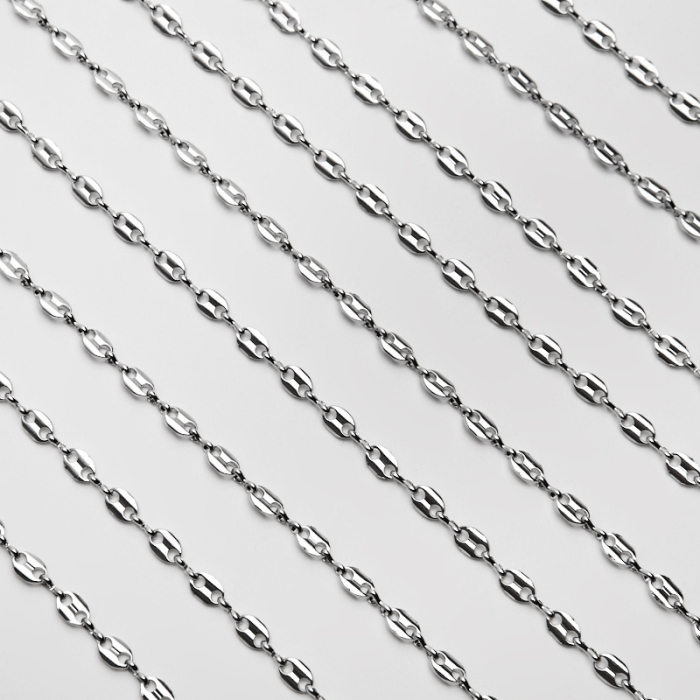 Łańcszek fasolki ze stali chirurgicznej w kolorze srebrnym 7,5x5mmTo funkcjonalny komponent do biżuterii handmade. Stal chirurgiczna 316L dobrze sprawdza się w biżuterii noszonej na co dzień, ponieważ łączy trwałość z estetycznym wykończeniem.Łańcuszek ze stali chirurgicznej 316L to praktyczna baza do tworzenia naszyjników, bransoletek i innych projektów biżuteryjnych. Może pełnić funkcję gotowego elementu nośnego albo stanowić część większej kompozycji z zawieszkami, łącznikami czy detalami dekoracyjnymi.Rozmiar