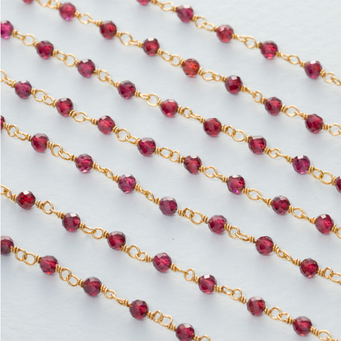 Łańcuch srebrny AG925 pozłacany z granatem fasetowanym 3mm