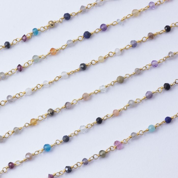 Łańcuch srebrny AG925 pozłacany z kamieniami mix 2mm