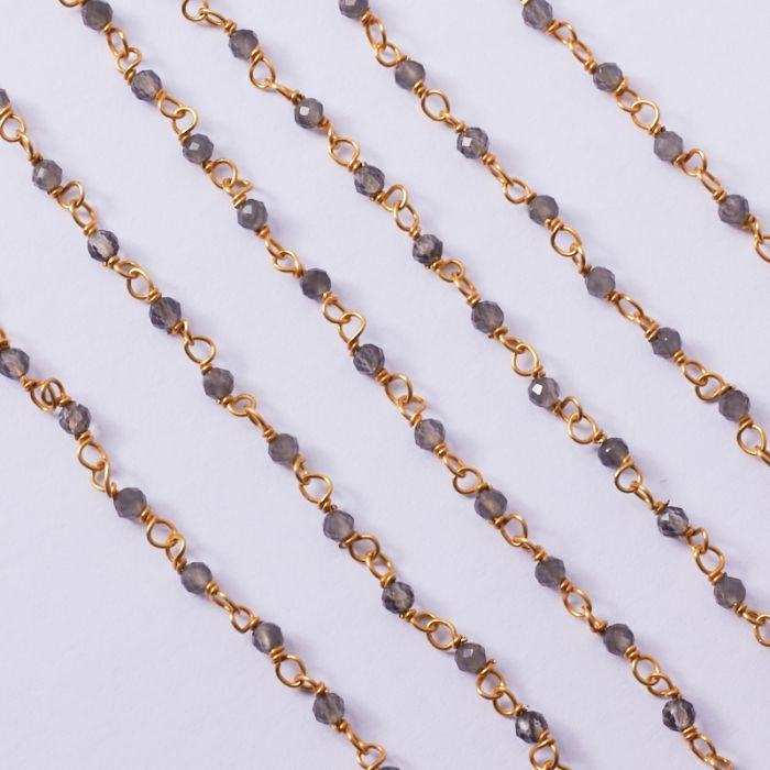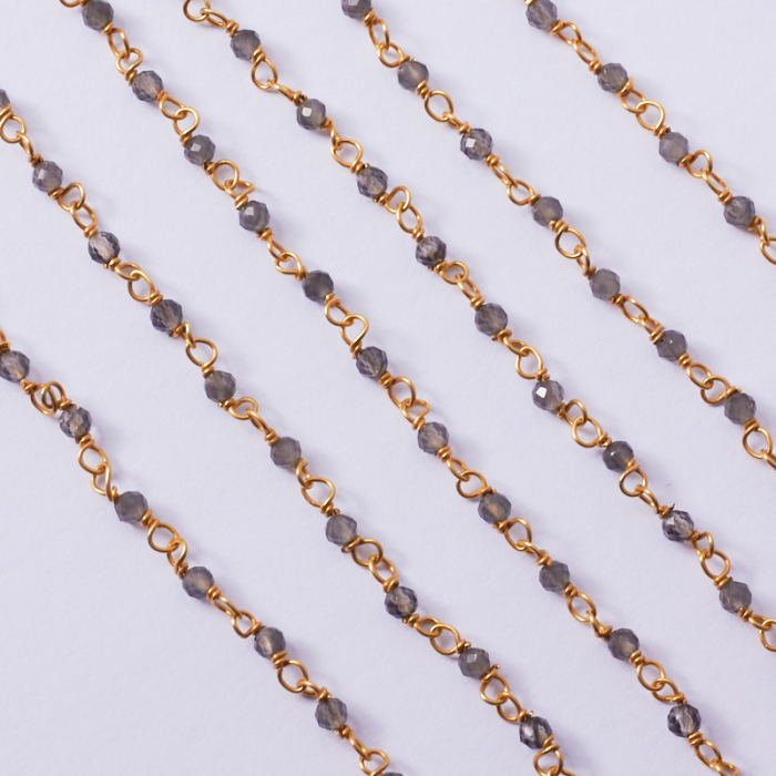 Łańcuch srebrny AG925 pozłacany z kwarcem dymnym 2mm