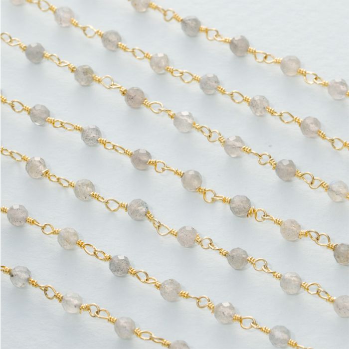 Łańcuch srebrny AG925 pozłacany z labradorytem fasetowanym 3mm