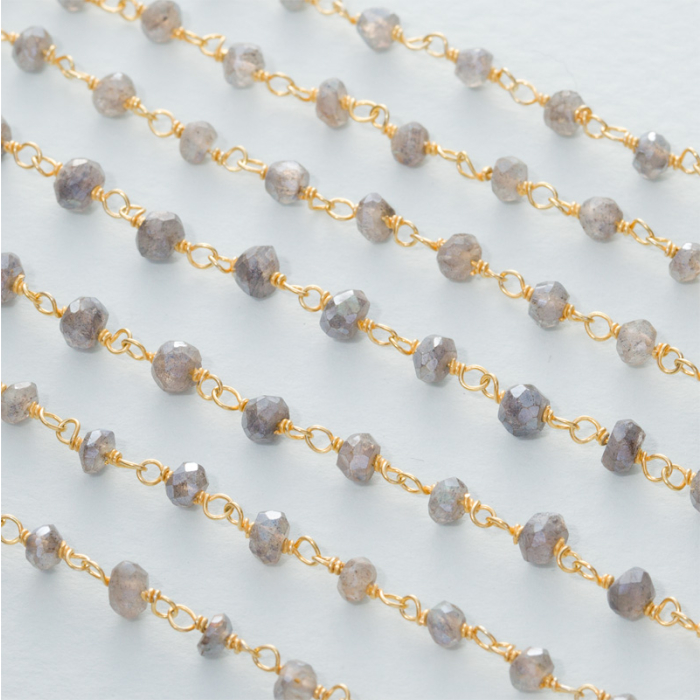 Łańcuch srebrny AG925 pozłacany z labradorytem platerowanym fasetowanym 4x2.5mm