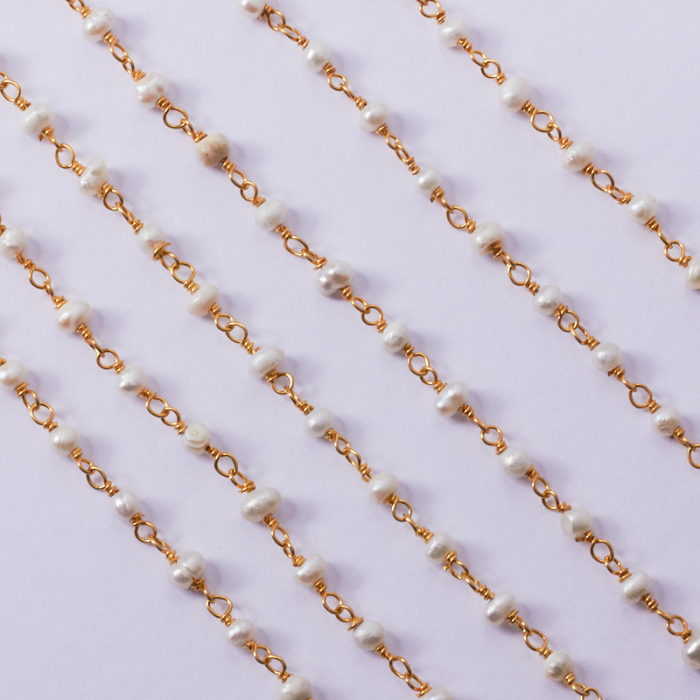 Łańcuch srebrny AG925 pozłacany z naturalnymi perłami pozłacany 4-5mm