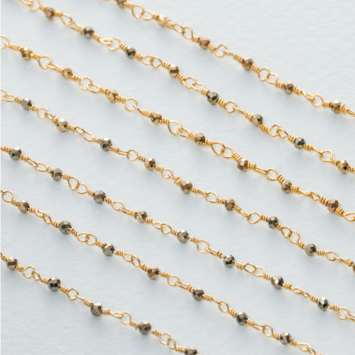Łańcuch srebrny AG925 pozłacany z pirytem fasetowanym 2x1.5mm