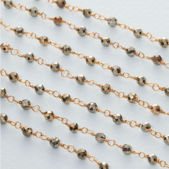 Łańcuch srebrny AG925 pozłacany z pirytem fasetowanym 3mm