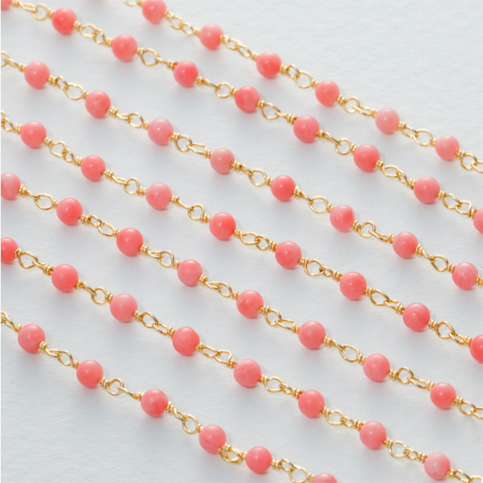 Łańcuch srebrny AG925 pozłacany z różowym koralem 3mm