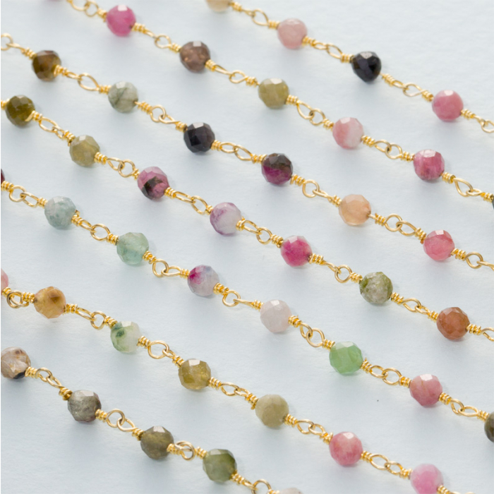 Łańcuch srebrny AG925 pozłacany z turmalinem fasetowanym 3.5mm