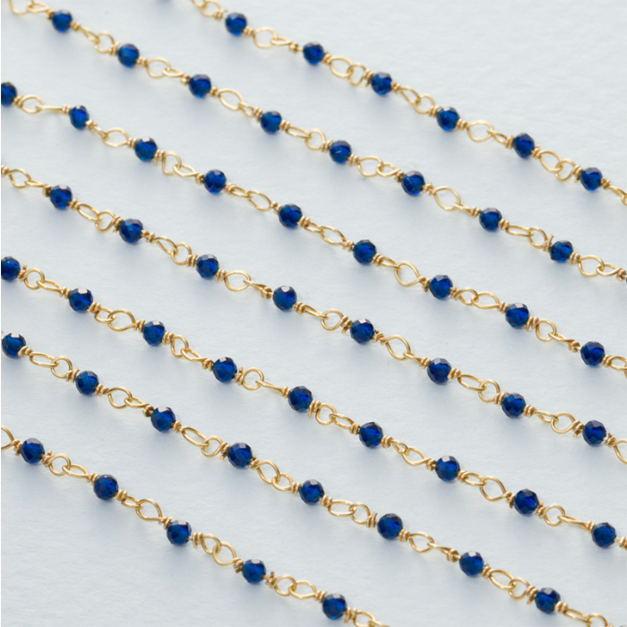 Łańcuch srebrny AG925 pozłacany ze spinelem niebieskim fasetowanym 2mm