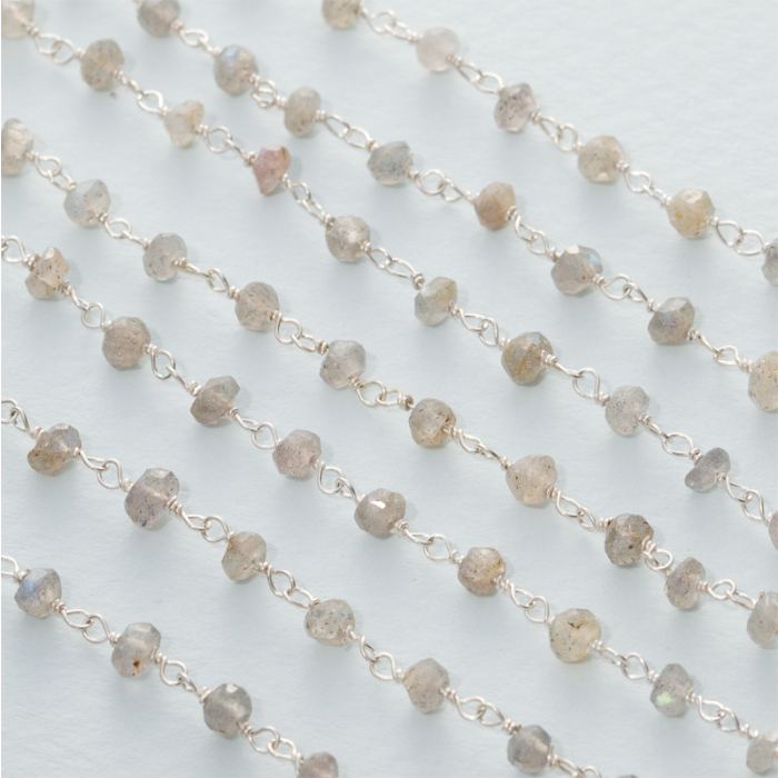 Łańcuch srebrny AG925 z labradorytem fasetowanym 3,5x3mm