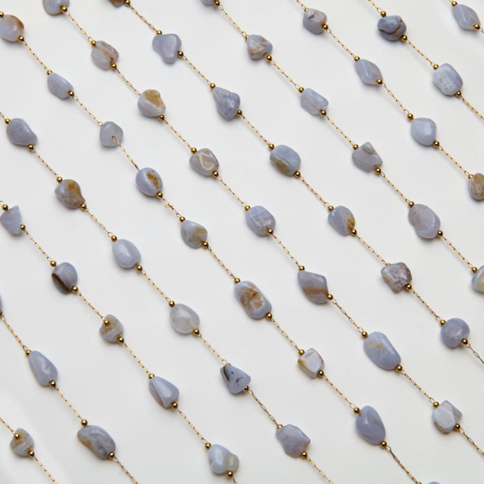 Łańcuch z agatem blue lace ze stali chirurgicznej w kolorze złotym 13x4mm