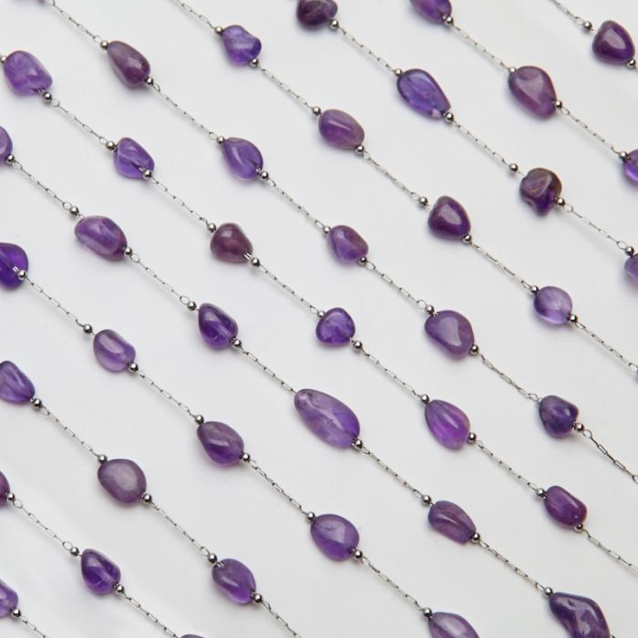 Łańcuch z ametystem ze stali chirurgicznej w kolorze srebrnym 13x4mm