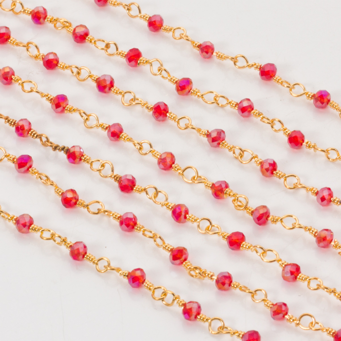 Łańcuch z kryształkami oponkami siam AB 3x4mm
