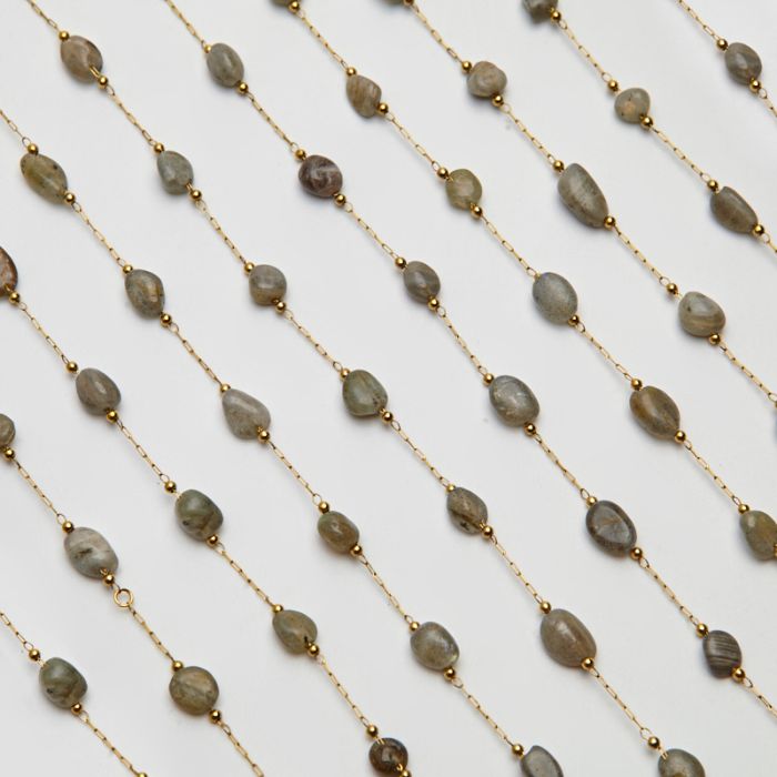 Łańcuch z labradorytem ze stali chirurgicznej w kolorze złotym 13x4mm