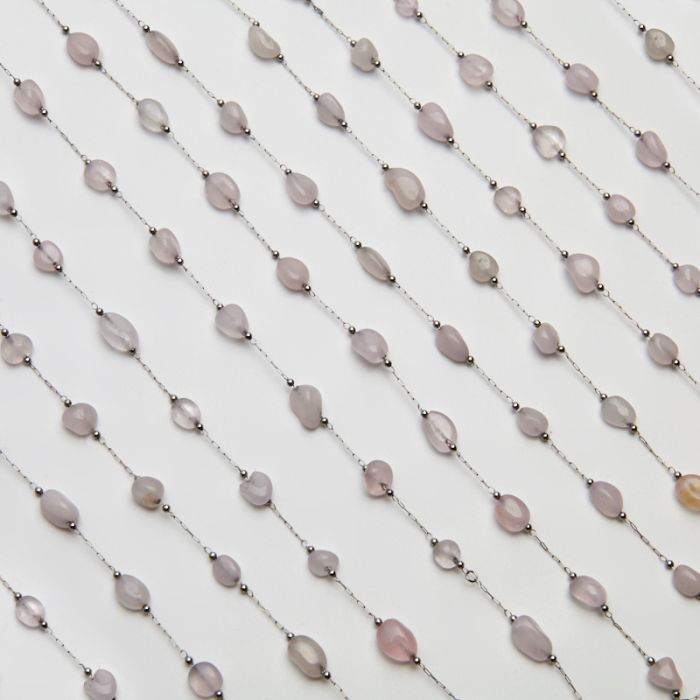 Łańcuch z różowym kryształem górskim ze stali chirurgicznej w kolorze srebrnym 13x4mm