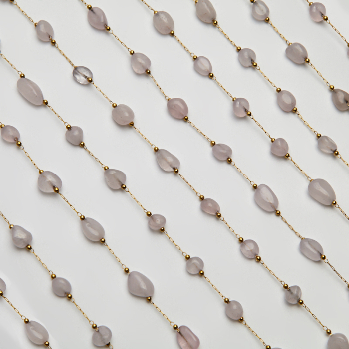 Łańcuch z różowym kryształem górskim ze stali chirurgicznej w kolorze złotym 13x4mm