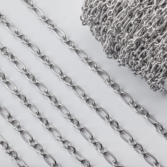 Łańcuch ze stali chirurgicznej mieszane owale w kolorze srebrnym 14x7mmTo praktyczny półfabrykat do projektów biżuteryjnych. To materiał chętnie wybierany do biżuterii handmade ze względu na trwałość, estetykę i wygodę użytkowania.Łańcuszek ze stali chirurgicznej 316L to praktyczna baza do tworzenia naszyjników, bransoletek i innych projektów biżuteryjnych. Może pełnić funkcję gotowego elementu nośnego albo stanowić część większej kompozycji z zawieszkami, łącznikami czy detalami dekoracyjnymi.Rozmiar