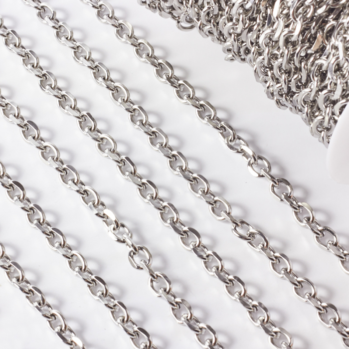 srebrny ułatwia dopasowanie łańcuszka do pozostałych elementów ze stali chirurgicznej.To funkcjonalny komponent do biżuterii handmade oraz gotowych realizacji o nowoczesnym wyglądzie.