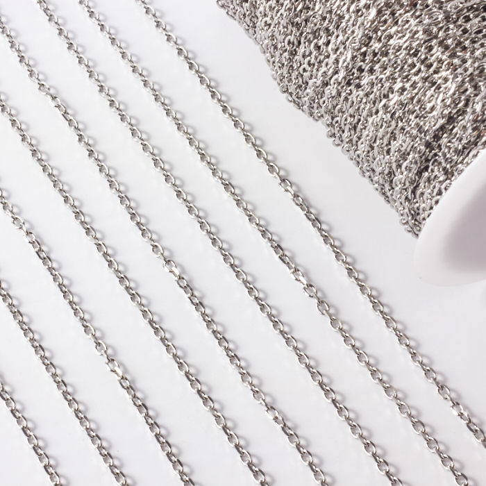 Łańcuch ze stali chirurgicznej owal fasetowany w kolorze srebrnym 5x4mmTo funkcjonalny komponent do biżuterii handmade. Stal chirurgiczna 316L jest ceniona za odporność na korozję i estetyczny wygląd w codziennym użytkowaniu.Łańcuszek ze stali chirurgicznej 316L to praktyczna baza do tworzenia naszyjników, bransoletek i innych projektów biżuteryjnych. Może pełnić funkcję gotowego elementu nośnego albo stanowić część większej kompozycji z zawieszkami, łącznikami czy detalami dekoracyjnymi.Rozmiar