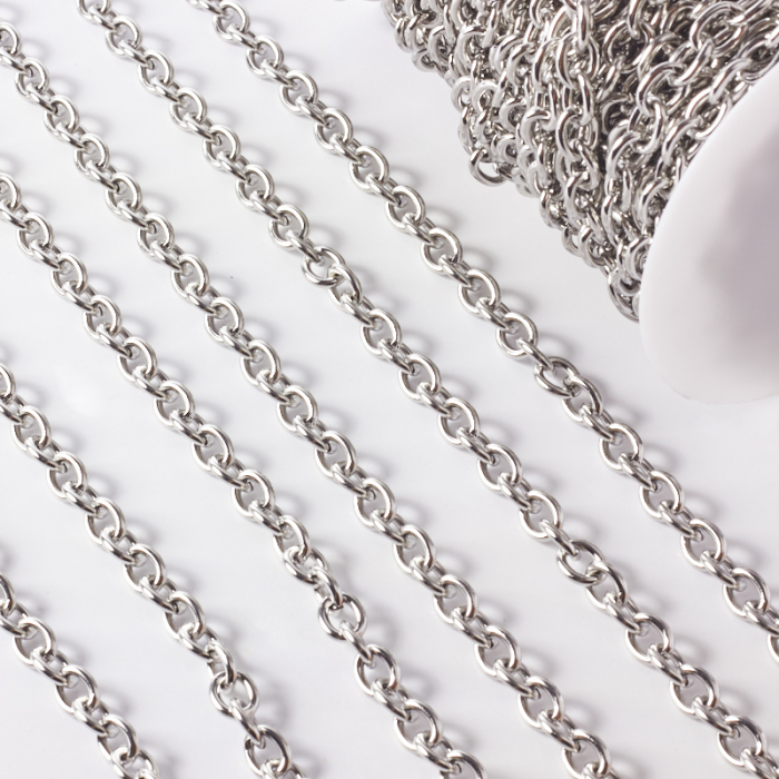 Łańcuch ze stali chirurgicznej owal gładki w kolorze srebrnym 10x8mm
