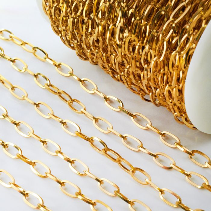 Łańcuch ze stali chirurgicznej owal w kolorze złotym 6x12mm