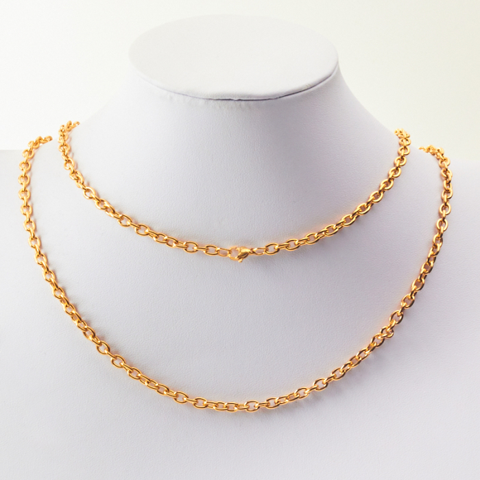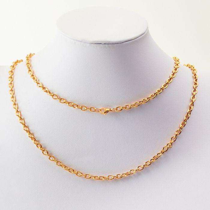 Łańcuch ze stali chirurgicznej owal z zapięciem w kolorze złotym 53cm PVD